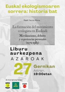 La formación del movimiento ecologisata en Euskadi. Presentación del libro. En Gernika, en el Astra, a las 19:00
