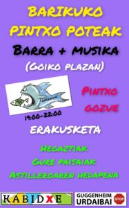 Pintxo Potes de los viernes. Barra + Música + Exposición: Hegaztiak, Gure paisaiak, Astilleroaren Hedapena. En la plaza de arriba