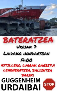 REUNIÓN el 7 de octubre. Astillero, lurrak garbitu!! Leheneratzea, baldintza barik!! En la playa de Laida a las 17:00